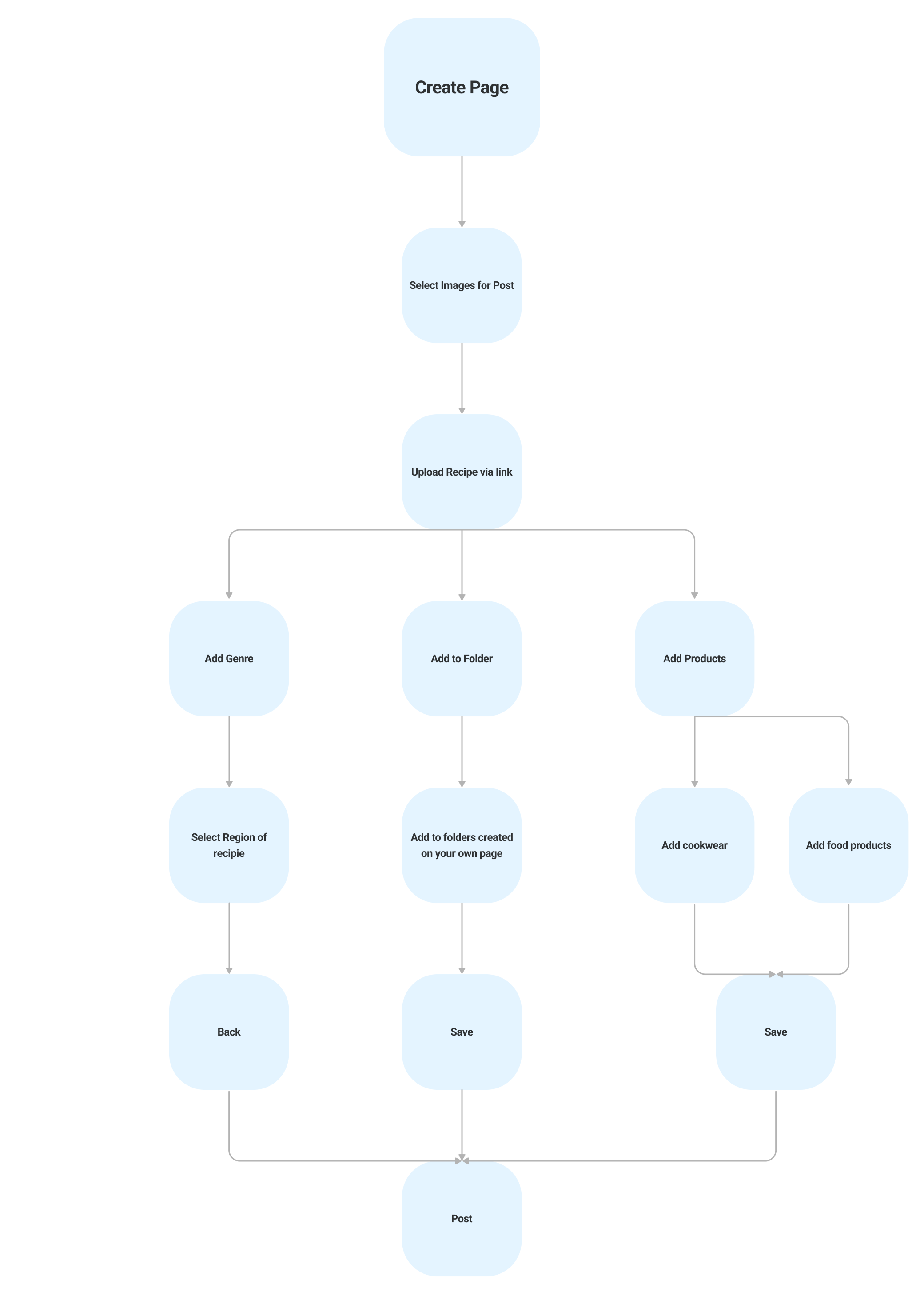 With the understanding the main pain points, I created a simple taskflow for a user creating a post.