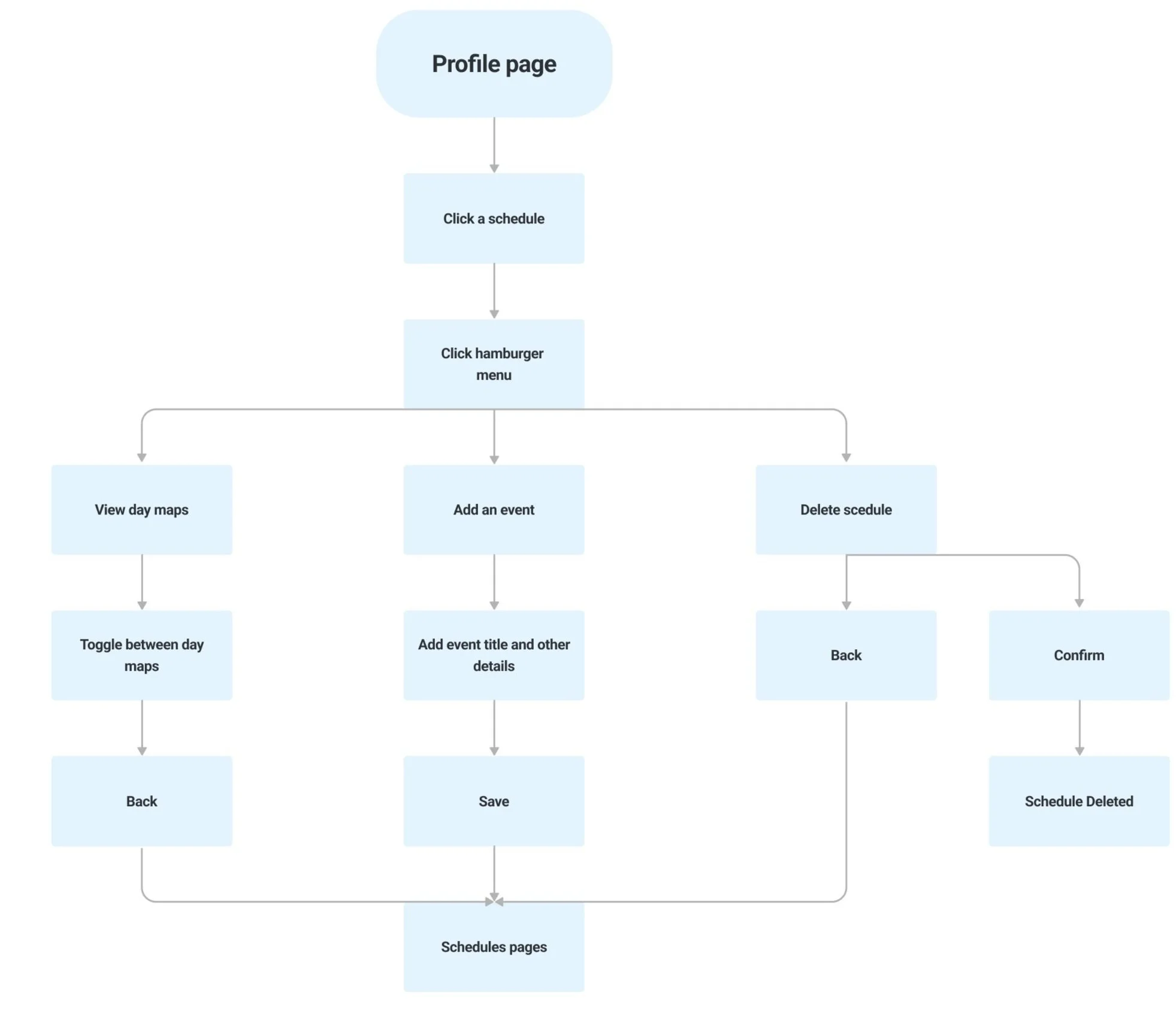 With the three key features of the app chosen, I created task flows to guide my design choices before moving into prototyping that would make these features usable and intuitive.