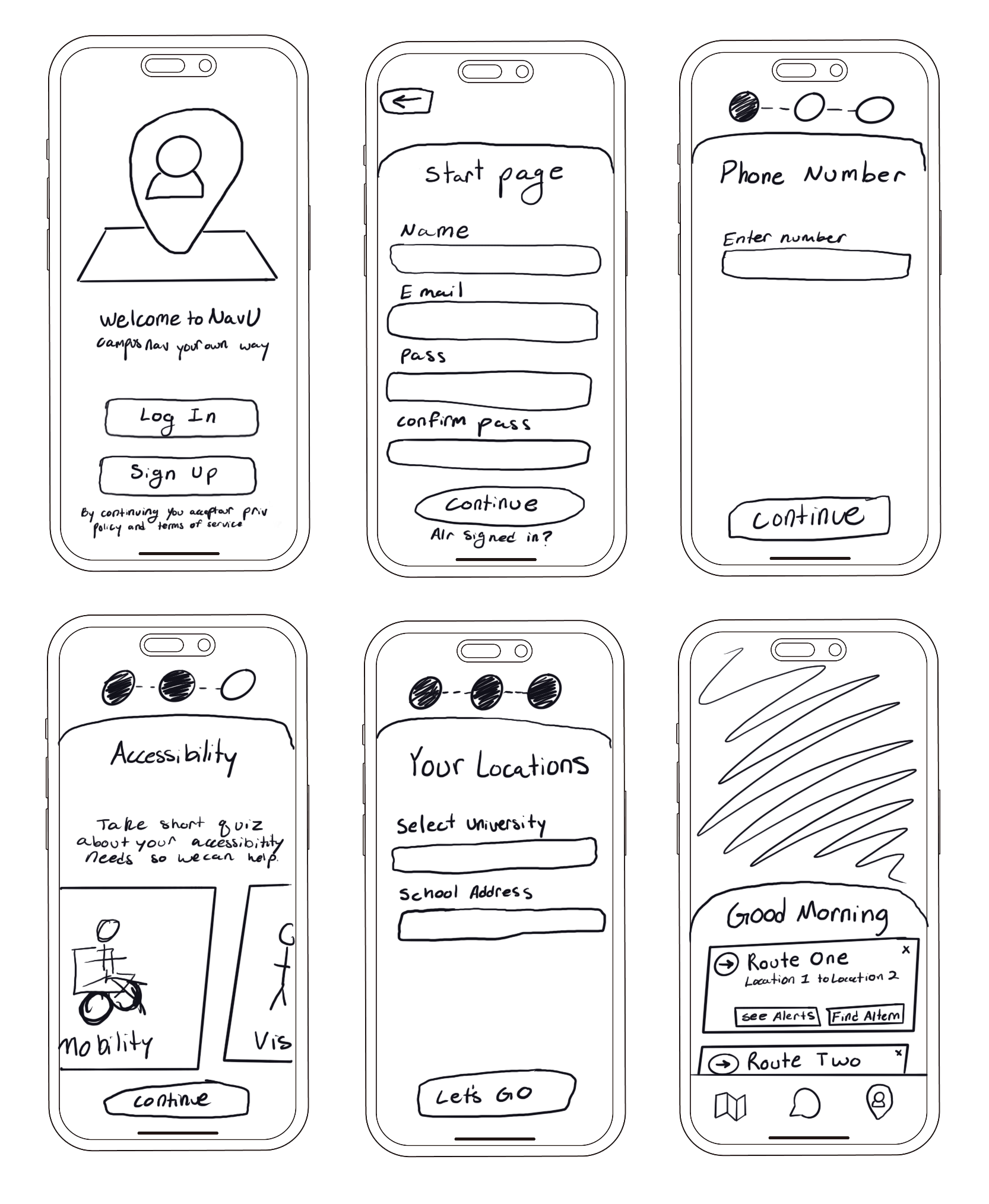 NavU is an app I designed to support students with diverse mobility, vision, and cognitive needs as they navigate their campuses. The app was created as a result of interviews with UW Campus accessibility professionals along with a range of college students to understand their needs.