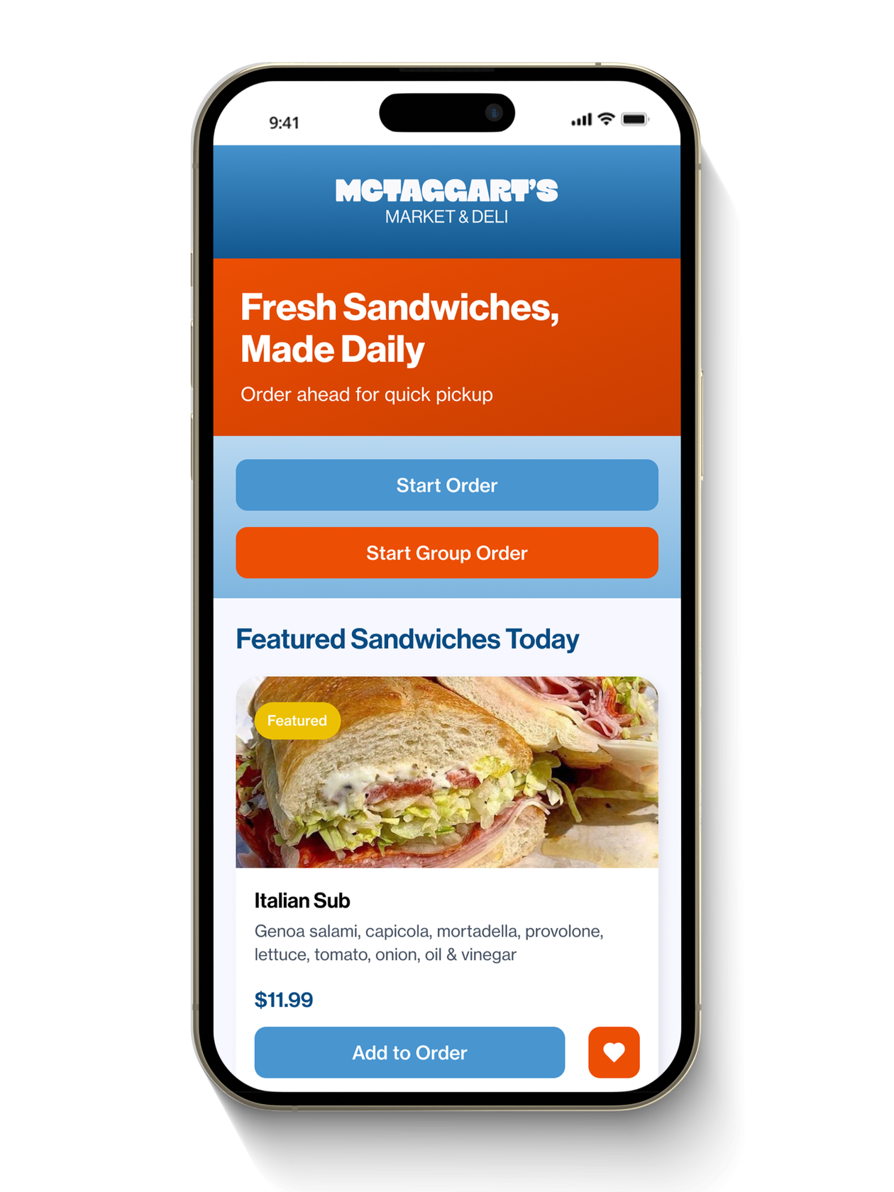 Challenge: Tagg’s Deli lacked a mobile ordering experience, making it difficult for customers—especially groups—to efficiently place, customize, and coordinate orders. This led to friction in high-demand scenarios and missed opportunities to better serve their core user base.