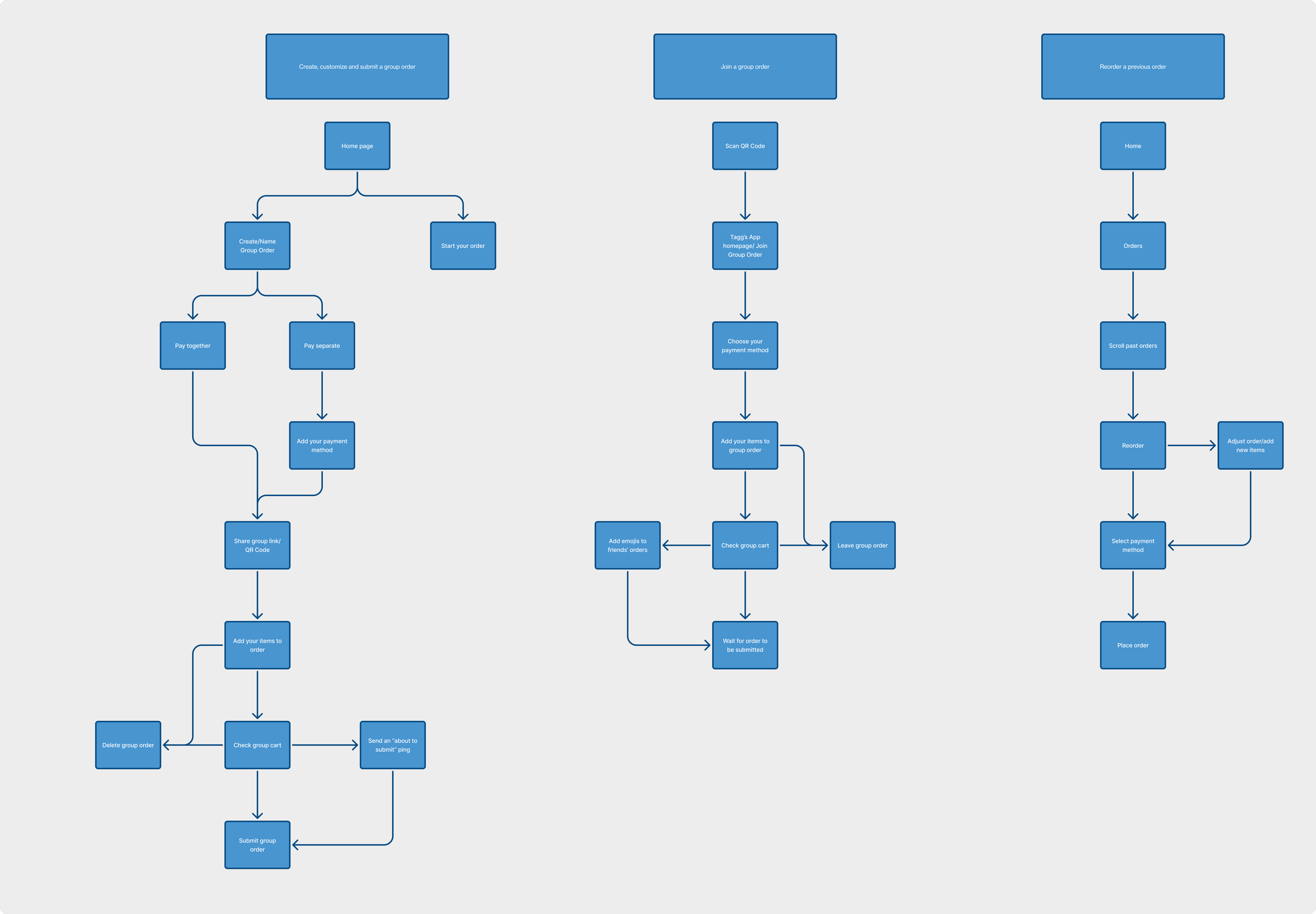 Mapping user flows helped me realize how quickly the group ordering process became overly complex, especially when users switched between creating, joining, and editing orders. This led me to streamline flows and reduce unnecessary steps, particularly for re-ordering and joining.